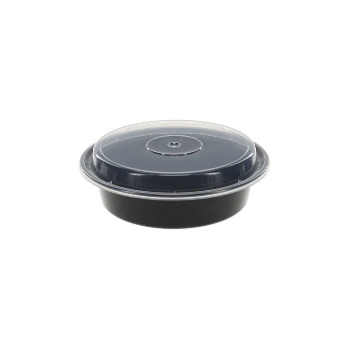 24oz Black Round Microwave Container with Clear Lids 150ct