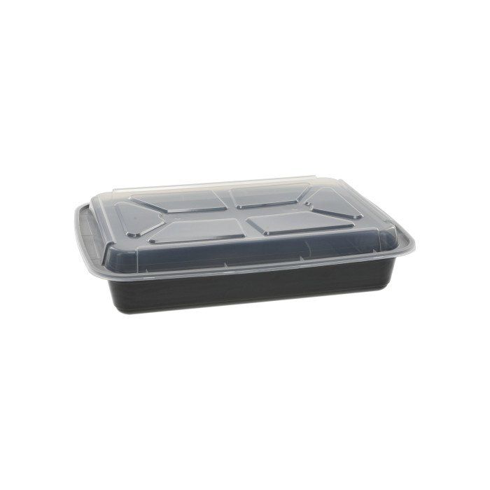 38oz Black Rectangle Microwave Container with Clear Lids 150ct